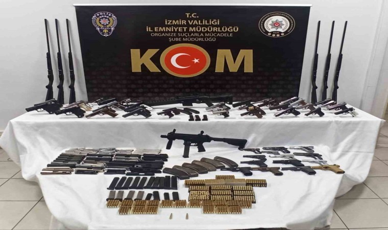 İzmir Cumhuriyet Başsavcılığı koordinesinde; silah ticareti, tefecilik ve tehdit suçlarını işlediği tespit edilen 4 organize suç örgütüne yönelik İzmir polisi tarafından operasyon yapıldı. İzmir merkezli olmak üzere; Ödemiş, Tire ve Aliağa ilçelerinde düzenlenen operasyonda; 2 adet otomatik tabanca, 100 adet tabanca, 80 adet tüfek, 54 adet kurusıkı tabanca, 585 adet tabanca şarjörü, 3 bin 764 adet tabanca fişeği, 139 adet tüfek kartuşu, 3 adet çelik yelek, 173 adet Piroteknik madde, 3 bin 488 adet patlayıcı madde ele geçirildi.