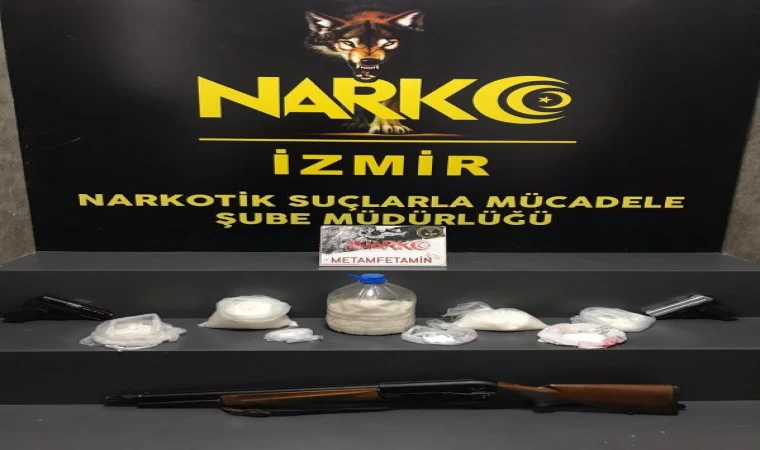 Kadir ÖZEN/İZMİR, (DHA)-İZMİR’de polisin düzenlediği baskınlarda 5 kilo 403 gram metamfetamin, ruhsatsız 3 tabanca, 1 tüfek ve 70 fişek ele geçirildi. Gözaltına alınan 1 şüpheli, tutuklandı.