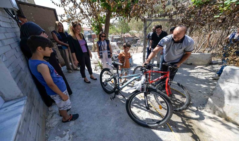 İzmir Büyükşehir Belediyesi, Yamanlar Dağı yangını sonrasında yangından etkilenen mahallelerdeki vatandaşların sorunlarına çözüm üretmeye devam ediyor. Bayraklı Onur Mahallesi’nde ikamet eden ve yangında bisikletleri yanan Şimşek ailesinin oğulları Oğuzhan ve Orhan’a sürpriz yapıldı. Büyükşehir ekipleri ziyarette iki miniğe yeni bisikletlerini teslim etti.