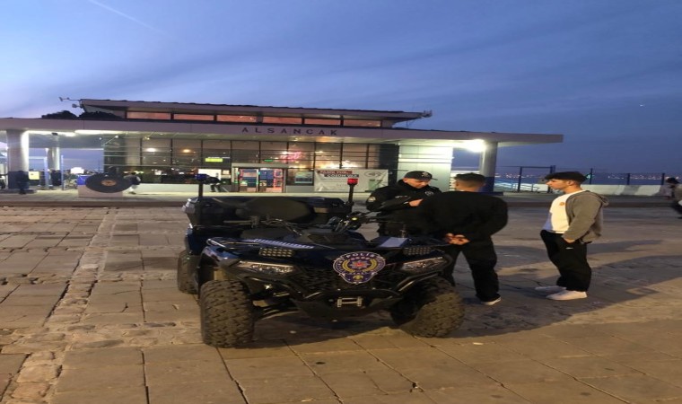 Konak ilçesinde 15 gün önce göreve başlayan ATV’li polis ekipleri de Konak İlçe Emniyet Müdürü Mehmet Balıkçıoğlu’nun talimatları doğrultusunda yeni yılda denetim ve uygulamalarını sıklaştırdı. 11 ATV’li polis, özellikle araç trafiğine kapalı olan ve sadece yayaların bulunabileceği Alsancak 1. Kordon gibi yerlerde hareket kabiliyeti nedeniyle daha etkin şekilde görev yapıyor. Bugüne kadar 15 bin kişinin sorgusunu gerçekleştiren ATV araçlı polis ekipleri, çeşitli suçlardan aranan 50 kişiyi yakaladı. Vatandaşların yoğun ilgisiyle karşılaşan ATV’li polisler, özellikle yeni yılda sabahın ilk ışıklarına kadar aralıksız çalışmalarını sürdürecek.