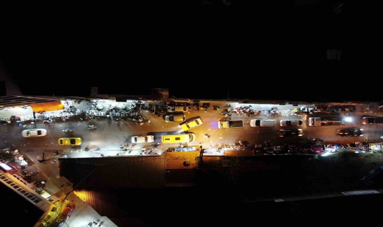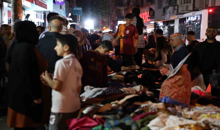 Binlerce İzmirli, on bir ayın sultanı Ramazan’ın bitmesinin ardından Karabağlar’ın Bozyaka Semti Eskizimir Caddesi üzerinde kurulan seyyar tezgahlarda alışveriş yapmak için yoğunluk oluşturdu. Yoğun trafiğin oluştuğu caddede, ucuz ürün alabilmek için birbiriyle yarışan İzmirliler adeta çılgınlar gibi alışveriş yaptı. Tekstil ürünlerinden hediyelik eşyalara, kaldırımda açılan tezgahlarda baklava satışına kadar çeşitli ürünlerin bulunduğu alanda gecenin ilerleyen saatlerine kadar vatandaşlar alışverişin keyfini sürdü. Caddedeki araç ve insan yoğunluğu ise dron ile görüntülendi.