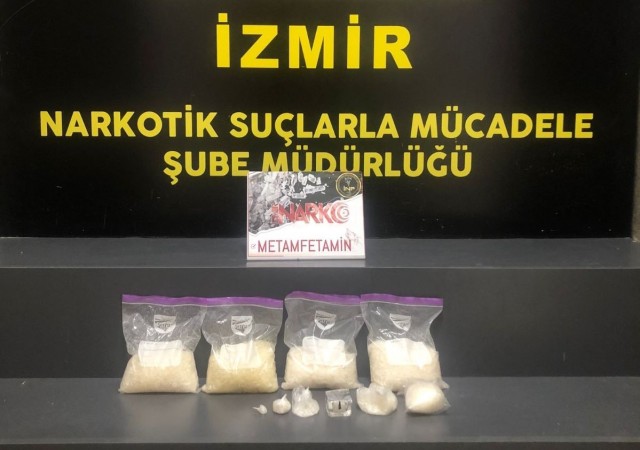 İzmir İl Emniyet Müdürlüğü Narkotik Suçlarla Mücadele Şube Müdürlüğü ekipleri, Buca ilçesinde A.A. adlı şahsın uyuşturucu ticareti yaptığını tespit etti. Şüphelinin izini süren polis ekipleri, A.A.'nın ikametine operasyon düzenledi ve şüpheliyi kıskıvrak yakaladı. Yapılan aramada ise 2 kilo 84 gram metamfetamin bulundu.