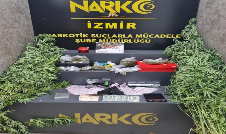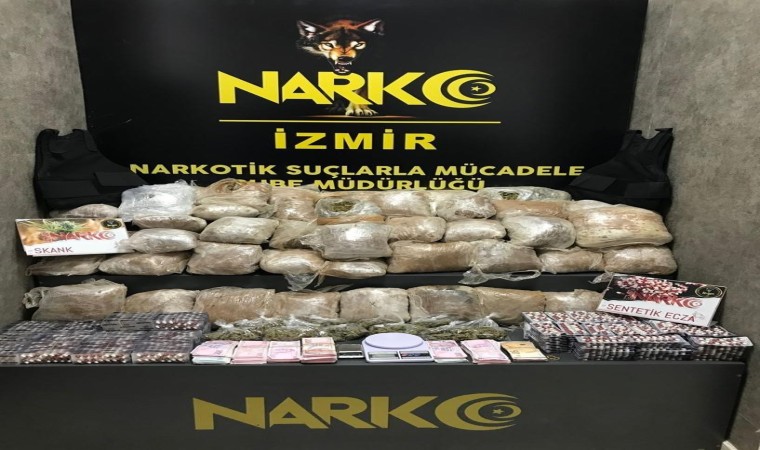 İzmir İl Emniyet Müdürlüğü Narkotik Suçlarla Mücadele Şube Müdürlüğü ekipleri, 27 Ağustos- 2 Eylül tarihleri arasında kentin bir çok noktasında uyuşturucu operasyonları gerçekleştirdi. 50 ayrı operasyonda, 38 kilo 699 gram esrar-skunk, bir kilo 623 gram metamfetamin, 94 bin 618 adet sentetik ecza maddesi, çeşitli tür ve miktarlarda satışa hazır hale getirilmiş uyuşturucu madde, 14 hassas terazi ile 11 tabanca, 68 tabanca/tüfek fişeği ve uyuşturucu ticaretinden elde edildiği belirlenen 281 bin 510 lira nakit para ele geçirildi.