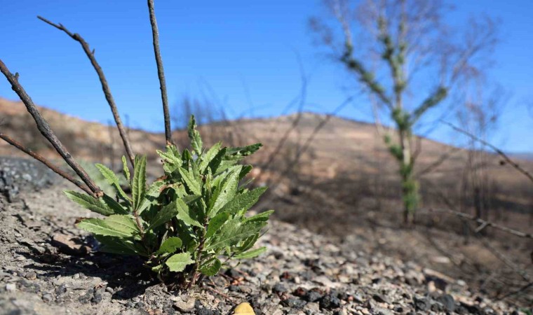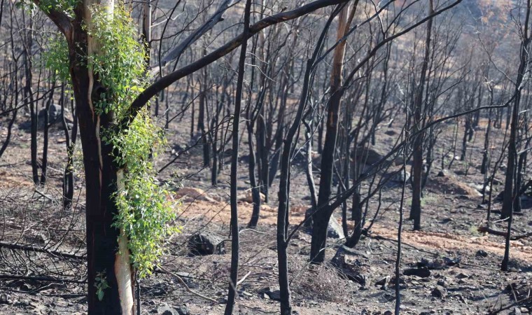 Öte yandan büyük yangın sorası doğanın kendini yenileyerek yanan alanların yeniden yeşerdiği görüldü. Bölgede yanan bir ağacın yarısının yandığı, yarısının ise yeşermesi dikkat çekti.