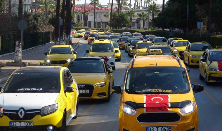 İzmir’de soğukta üşümesin diye aldığı şahsın silahlı saldırısına uğrayarak öldürülen taksici Oğuz Erge için Mersin’de 450 taksici bir araya geldi. Bir bölümü 6. Cadde otoparkında toplanan taksiciler, Marina kavşağı üzerinden karşı yönden gelen diğer meslektaşlarıyla bir araya geldi. Sahil yolu üzerinden liman kavşağına doğru konvoy oluşturan 450 taksici, İstiklal Caddesi üzerinde gerçekleştirdikleri turu yine 6. Cadde otoparkında tamamladı. Taksicilerin araçları üzerinde yer alan Türk bayrakları ile Oğuz Erge’nin aracındaki güvenlik kamerası görüntülerini içeren görseller dikkat çekti.