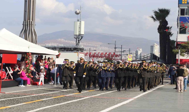İzmir’de Cumhuriyet Bayramı törenleri, her yıl olduğu gibi bu yıl da Cumhuriyet Meydanı’nda yapıldı. Tören, İzmir Valisi Süleyman Elban, Ege Ordusu ve Garnizon Komutanı Orgeneral Kemal Yeni ve İzmir Büyükşehir Belediye Başkanı Tunç Soyer’in, tören aracıyla halkı ve törene katılanların bayramını kutlamasıyla başladı. Törene; İzmir milletvekilleri, siyasi partilerin temsilcileri, sivil toplum kuruluşları ve meslek odalarının temsilcileri ile çok sayıda vatandaş katıldı. Saygı duruşu ve İstiklal Marşı’nın okunması ile devam eden törende Türk bayrağı göndere çekildi. Ardından Cumhurbaşkanı Recep Tayyip Erdoğan’ın 29 Ekim Cumhuriyet Bayramı mesajı okundu.