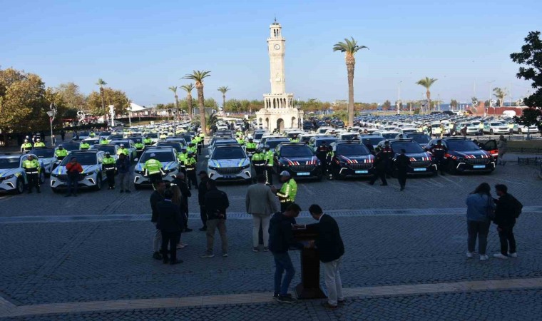 İzmir’de emniyet ve jandarma teşkilatına yeni tahsis edilen 688 aracın teslim töreni, İzmir Valiliği önünde gerçekleştirildi. Yeni tahsis edilen araçlar Konak Meydanı’nda sirenler çalarak İzmir caddelerinde kortej yaptı.