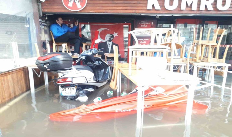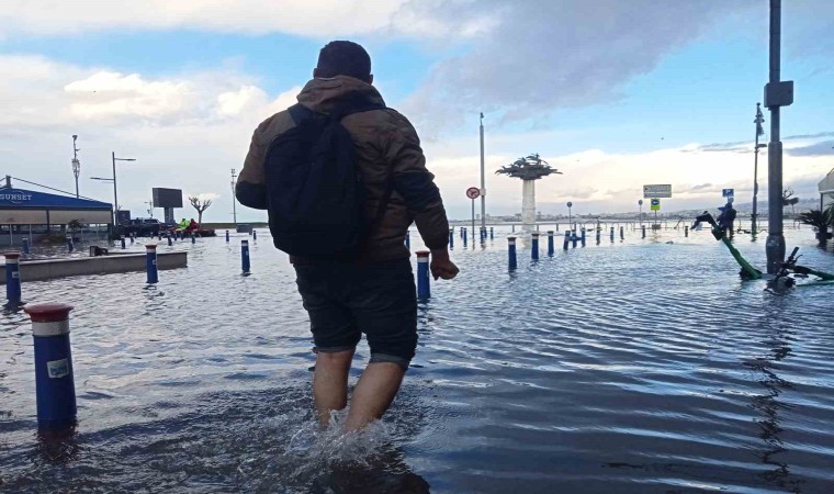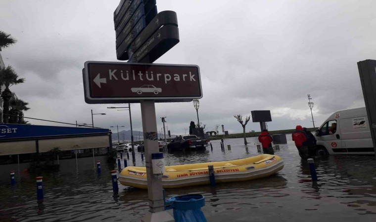 Öte yandan, Karşıyaka ilçesinin yanı sıra Alsancak ve Kordon’da da deniz taştı. Bir çok iş yeri ve evi su basarken, Kıbrıs Şehitleri Caddesi de sular altında kaldı. Sokakta mahsur kalan vatandaşlar ise İzmir Büyükşehir Belediyesi Zabıta Daire Başkanlığı ekipleri tarafından kurtarıldı. Zabıtanın kamyonetinin kasasına binen vatandaşlar, tehlikeli olmayan noktalara taşındı.