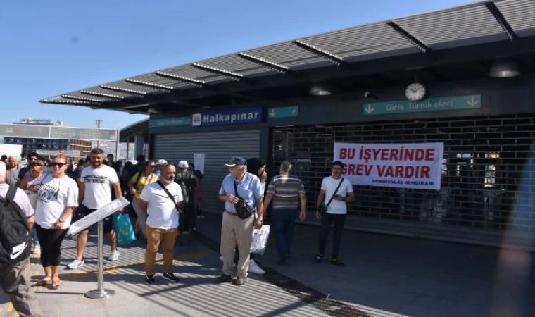 Hande NAYMAN/İZMİR, (DHA)-İZMİR’de Türkiye Demiryolu İşçileri Sendikası’na üye metro ve tramvay çalışanları, Toplu İş Sözleşmesi (TİS) görüşmelerinde uzlaşma sağlanamayınca greve gitti. Metro ve tramvay seferleri devre dışı kalırken, grevden haberi olmayan vatandaşlar mağdur oldu.
