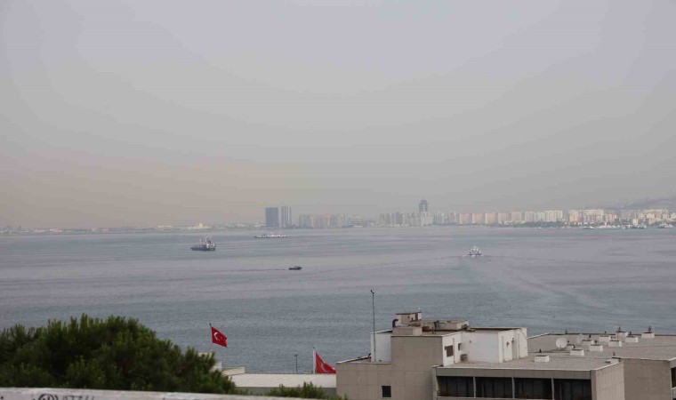 Afrika üzerinden gelen çöl tozu İzmir’e adeta bir sis bulutu gibi çökerken, kentte havanın rengi değişti, iki yaka denizden güçlükle görüldü.