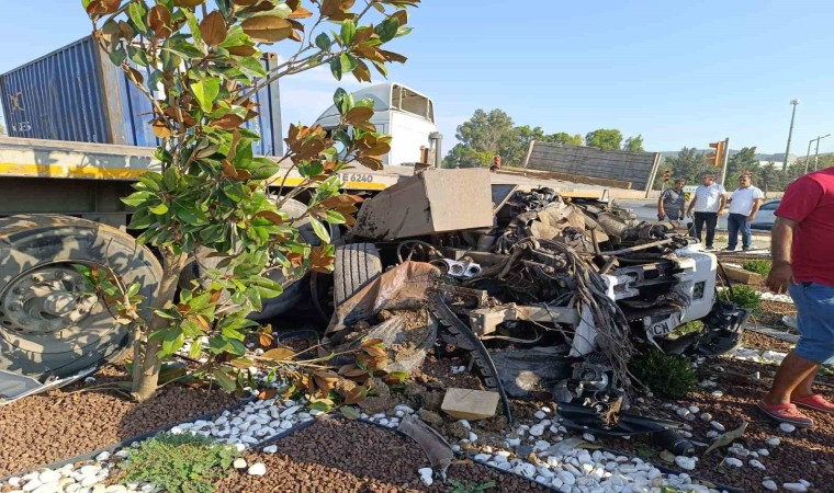Kaza, saat 16.30 sıralarında Küçük Sanayi Biçerova kavşağında meydana geldi. Edinilen bilgiye göre, İzmir yönünden Aliağa istikametine gitmekte olan B.D. (52) yönetimindeki 35 NCN 83 plakalı tır, kavşakta E.K. idaresindeki 10 E 6260 plakalı tırla çarpıştı. Kazada yaralanan B.D. ambulansla Aliağa Devlet Hastanesi’ne kaldırıldı. Yaralının hayati tehlikesinin olmadığı öğrenildi.