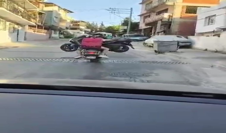 Olay, Konak ilçesi Gültepe Mahallesi Samsun Caddesi’nde meydana geldi. Motosiklet üstünde bulunan kimliği belirsiz 2 kişinin, seyir halindeyken motosikletin üstüne çıkardıkları bir başka motosikleti taşıdıkları anlar trafikte bulunan bir araçtaki vatandaşlar tarafından cep telefonu ile kayda alındı. Uzun bir süre rampa yukarı çıkan, trafiği ve canlarını tehlikeye atan motosikletli şahısları gören araçtaki vatandaşlar ise o anlarda olayı gülümseyerek karşıladı.