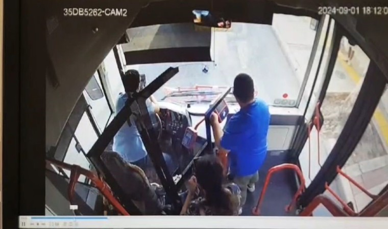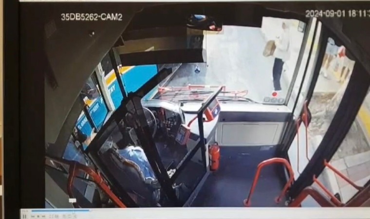 İzmir’de bir kadın otobüs sürücüsü, durağa yanaştığı esnada önünü kesen minibüs şoförünün saldırısına uğradı. O anlar otobüs kamerasına yansıdı.