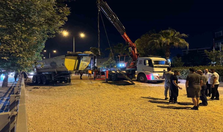 Öte yandan, devrilen dorse vinç yardımıyla bulunduğu yerden kaldırılırken, ekiplerce de mıcırlar yoldan toplandı. Trafik bir süreliğine tıkanırken, sürücüler başka bir güzergaha yönlendirildi. Kazayla ilgili soruşturma başlatıldı.
