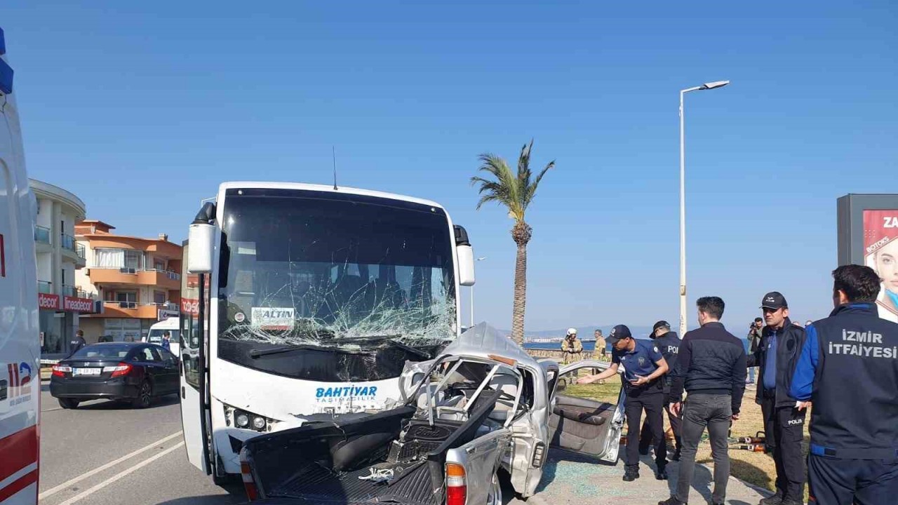 İzmir’de midibüs ile pikap çarpıştı: 1 ölü, 6 yaralı