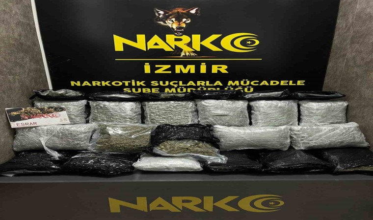 İzmir’de narkotik polislerince gerçekleştirilen operasyonlarda, 26 kilo 550 gram esrar ve 5 kilo 950 gram skunk ele geçirildi, 2 şüpheli gözaltına alındı.