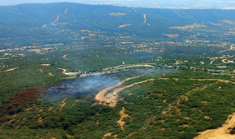 İzmir'in Ödemiş ilçesinde, saat 12.30'da bir otomobilde başlayan ardından da ormana sıçrayan yangın 4 saatte havadan ve karadan müdahaleyle kontrol altına alındı. Bölgede soğutma çalışmaları sürüyor. (DHA)