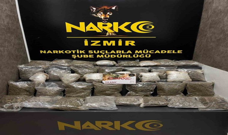 İzmir İl Emniyet Müdürlüğü Narkotik Suçlarla Mücadele Şube Müdürlüğü ekipleri, sokak satıcılarına yönelik gerçekleştirilen çalışmalar kapsamında bir oto kurtarıcıdan şüphelendi. Narkotik köpeği destekli yapılan aramada, araç içerisine zulalanmış halde 19 kilo 315 gram skunk esrar maddesi ele geçirildi.