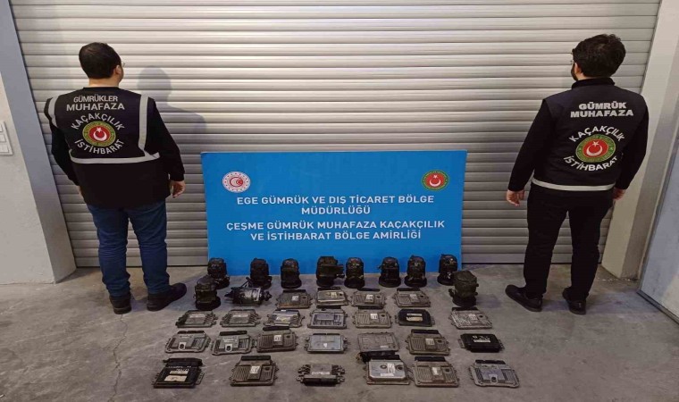 Çeşme Gümrük Muhafaza Kaçakçılık ve İstihbarat Bölge Amirliği ekipleri, Avrupa’dan yasa dışı yollarla gümrük kaçağı olarak yurda girişi yapılmaya çalışılan ürünleri tespit etti. Ekipler tarafından yapılan operasyonda, çeşitli marka lüks araçlara ait 24 adet oto beyni, 10 adet klima kompresörü ve 1 adet mazot pompası ele geçirildi.