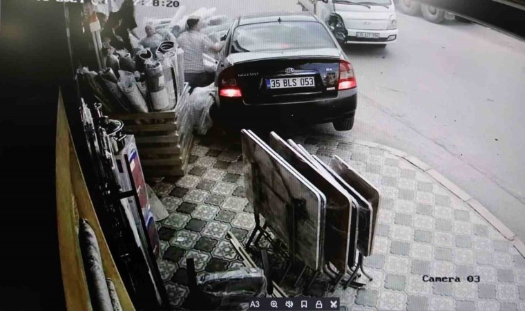 İzmir’de bir aracın otomobile ve kamyonete çarpıp iş yeri önünde duran 7 kişinin arasına daldığı kaza güvenlik kamerasına yansıdı. Kazada 1 kişinin bacağı kırılırken, sürücü baygınlık geçirdi.