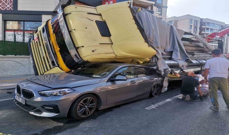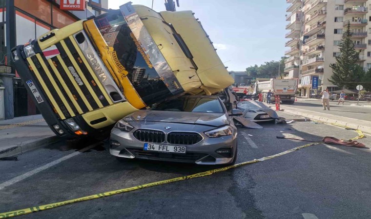 Ekiplerden kaçan tır sürücüsü, bir süre sonra seyir halindeyken kaldırıma çıkarak ışıklarda bekleyen 34 FLL 938 ve 35 YEV 47 plakalı araçların üzerine devrildi. Bu esnada orada bulunan bir hafif ticari araç da kazada hasar aldı. Kazayı gören vatandaşlar olay yerine yardıma koşarken, ihbar üzerine adrese polis, 112 Acil Sağlık, 110 AKS ve vinç sevk edildi.