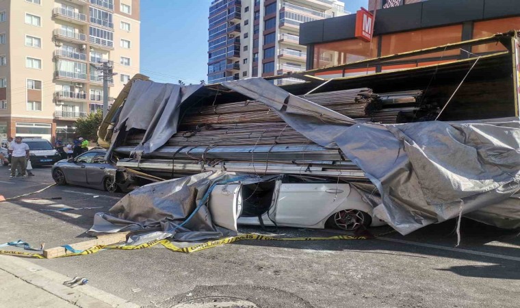 Öte yandan, tırın araçların üstüne devrildiği anlar ise bir iş yerinin güvenlik kamerasına yansıdı. Görüntüde, tırın kaldırıma çıkarak ışıklarda bekleyen araçların üstüne devrildiği ve o esnadan bekleme yapan bir başka aracın da zarar gördüğü yer aldı. Ayrıca, tır, vinç yardımıyla bulunduğu yerden kaldırılırken, hurdaya dönen 2 araç da çekicilere yüklenerek olay yerinden kaldırıldı.
