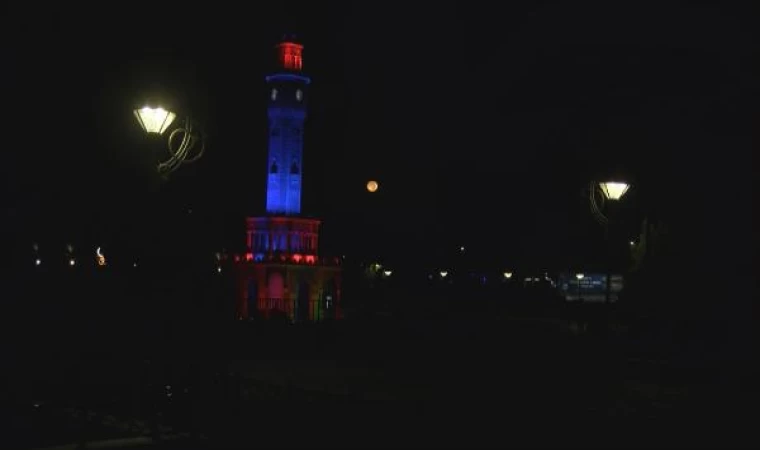 Halil İbrahim KARABIYIK/İZMİR, (DHA)- DÜNYA'nın birçok yerinde 30 Ağustos gecesi görülmeye başlayan 'Mavi Ay', İzmir'in simgelerinden Saat Kulesi ile birlikte görsel şölene sahne oldu.