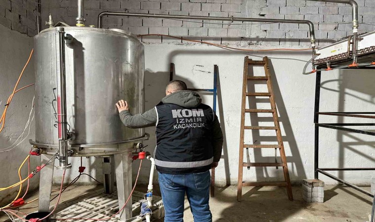 Menemen Cumhuriyet Başsavcılığı tarafından piyasaya kaçak ve sahte içki sürmeye çalışan şüphelilere yönelik yürütülen soruşturma kapsamında, Menemen ilçesinde bulunan bir depo ve imalathaneye polis ekipleri tarafından eş zamanlı baskın gerçekleştirildi. İzmir Kaçakçılık Suçlarıyla Mücadele Şube Müdürlüğü ekipleri tarafından yapılan baskında, adreste yapılan aramada, 28 bin litre etil alkol, 2 bin 600 bidon, 1070 taklit etiket, 35 plastik tank, 3 etil alkol damıtma kazanı, 2 soğutucu cihaz, 1 etil alkol doldurma makinesi ve 1 folyo kapatma makinesi ele geçirildi.