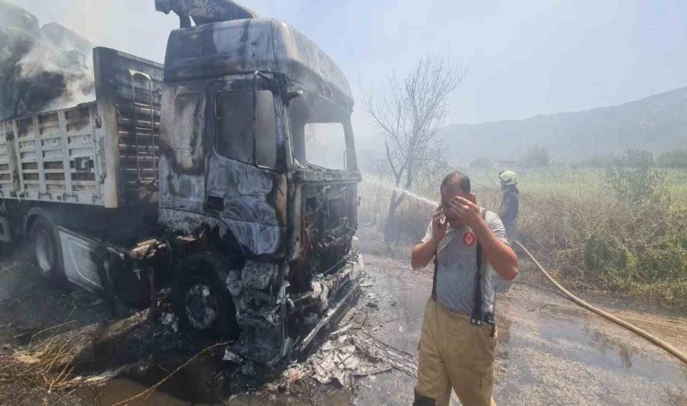 Olay, öğle saatlerinde ilçeye bağlı Boynuyoğun Mahallesi Dutlukuyu mevkiinde meydana geldi. Seyir halindeyken henüz belirlenemeyen bir nedenle bir anda tırın kasasında yangın çıktı. Durumun bildirilmesi üzerine olay yerine itfaiye ve jandarma ekipleri sevk edildi. Tırda bulunan samanları tutuşturması üzerine alevler bir anda büyürken, araç kullanılamaz hale geldi.