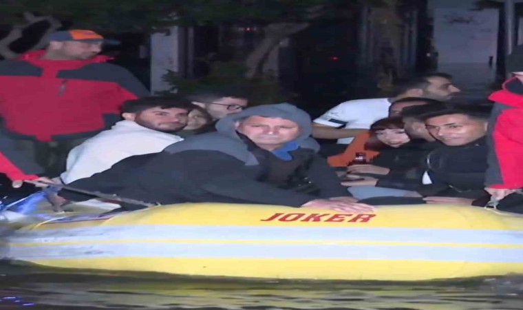 İzmir’de etkili olan fırtına nedeniyle bir eğlence mekanında mahsur kalan vatandaşlar, lastik botla kurtarıldı.