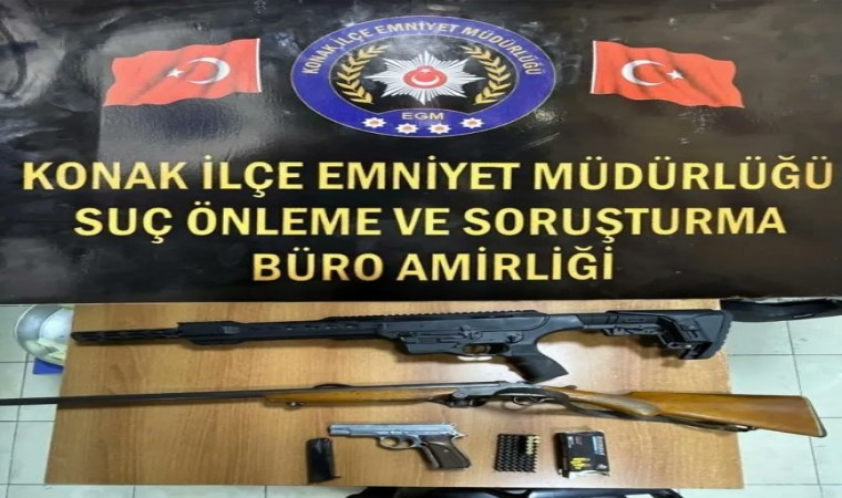 Konak İlçe Emniyet Müdürlüğü Suç Önleme ve Soruşturma Büro Amirliği ekipleri, yasa dışı silah ticareti yapılan iki adresi tespit etti. Adreslerde eş zamanlı olarak yapılan aramada; 8 adet ruhsatsız tabanca, 5 adet 9x19 mm fişek, 11 kartuş, silah namlusu açmak için kullanılan torna malzemeleri, silah yapımında kullanılan namlu şeklinde demir borular ve suçtan kazanılan 186 bin Türk lirası ele geçirildi.