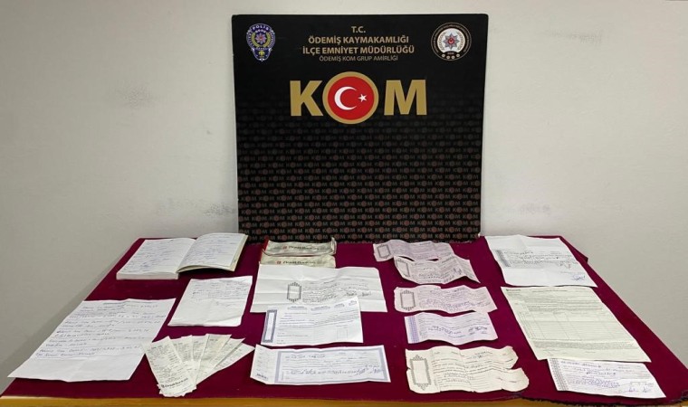 İzmir Mali Suçlarla Mücadele Şube Müdürlüğü ve Ödemiş Kaçakçılık ve Organize Suçlarla Mücadele (KOM) Grup Amirliği ekipleri, ilçede tefecilik yaptığı belirlenen şüphelileri tespit etti. Belirlenen adreslere gerçekleştirilen operasyonlarda çok sayıda senet ele geçirilirken, olayla ilgili 6 şüpheli gözaltına alındı.