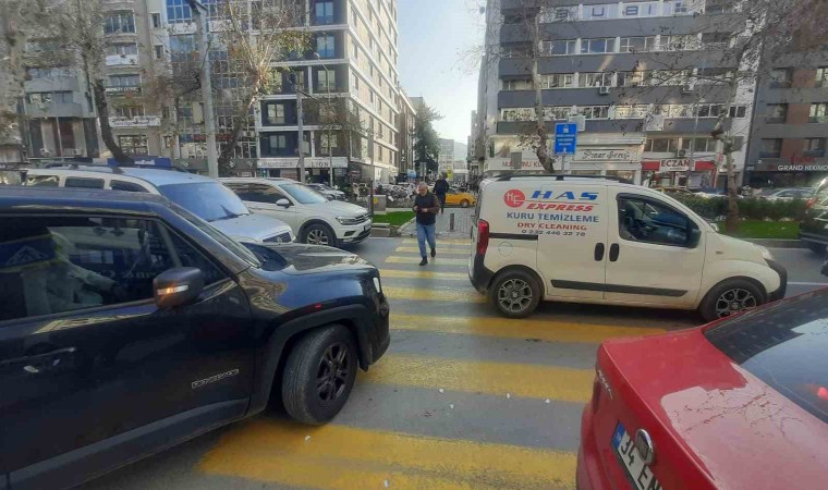İzmir’in Konak ilçesinde yaya geçidinde yolun karşısına geçmek için bekleyen vatandaşlara yol vermeyen sürücüler kameraya yansıdı.