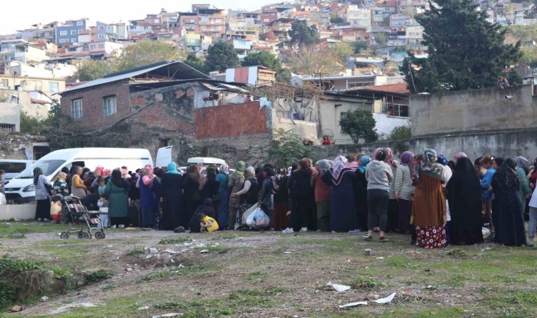 İhtiyaç sahiplerinden Miyade Elverdi ise “Her gün yemek dağıtımı oluyor. Bakkalda görüp de alamadıklarımız burada veriliyor. Haftada bir iki kez çocuklara çikolatalar veriliyor ve onlar çok mutlu oluyor. Hocamız bize çok yardımcı oluyor. Basmane’nin dışında ihtiyaç sahipleri de gelip buradan ihtiyaçlarını alıyorlar” diye konuştu.