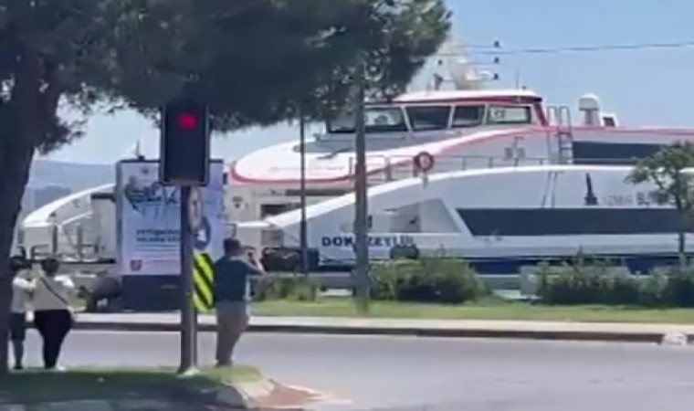 İzmir’in Karşıyaka ilçesinde arıza nedeniyle sürüklendiği ve durdurulamadığı iddia edilen bir yolcu gemisi, kıyı bandına sert bir şekilde çarptı. O anlar vatandaşlar tarafından cep telefonu kamerasıyla kayda alındı.