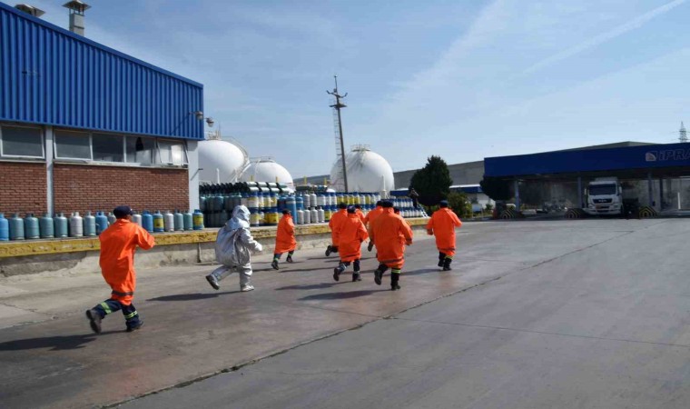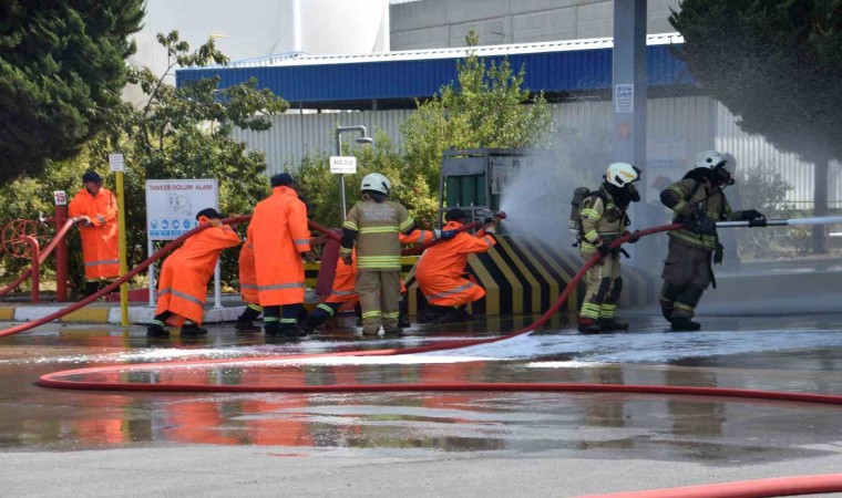 İzmir’in Aliağa ilçesinde, İtfaiye Haftası etkinlikleri çerçevesinde bir dolum tesisinde gerçekleştirilen tatbikat, adeta nefes keserek gerçeği aratmadı.