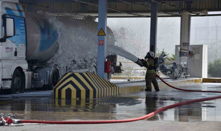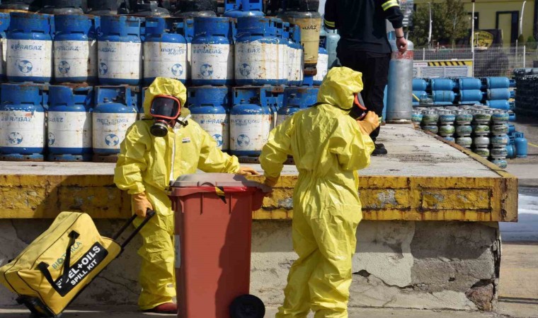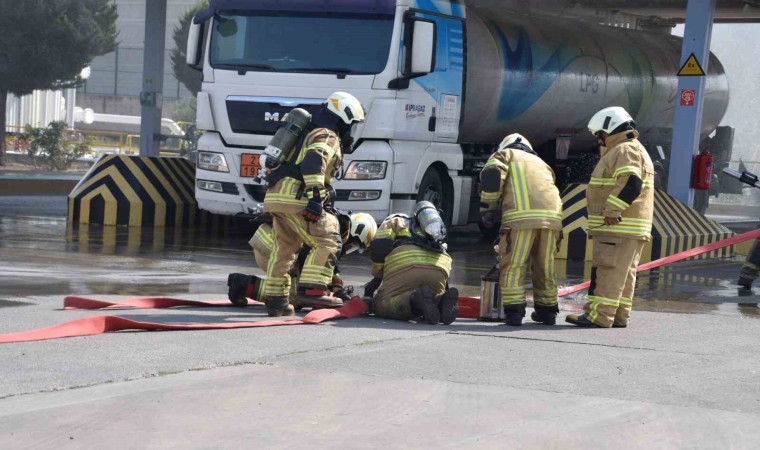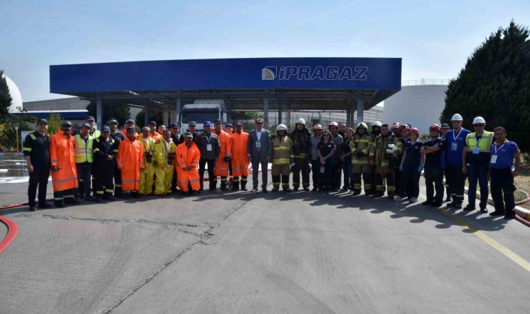 Tatbikatta senaryo gereğince deprem meydana geldi. Deprem sonrasında ise bir tankerde, dolum yapıldığı esnada gaz kaçağı oluştu ve yangın başladı. Yangın alarmının verilmesinin ardından yangın söndürme sistemi anında devreye girdi. 15 kişilik dolum tesisi yangına müdahale ekipleri, tesis müdürü öncülüğünde ilk müdahaleyi yaptı. Özel yanmaz kumaş giydirilmiş ekip, önce perondaki gaz vanasını kapattı. İlk müdahaleyi tesis çalışanlarının yaptığı yangın mahalline, hemen İzmir Büyükşehir Belediyesinin itfaiye araçları sevk edildi. Ekipler, baygın halde bulunan sürücüyü araçtan çıkartarak, AKS aracı ile hastaneye sevk etti. Yaklaşık 15 dakika süren kimyasal yangına müdahale başarı ile tamamlandı. Tüm bu tatbikat anları nefesleri kesti.
