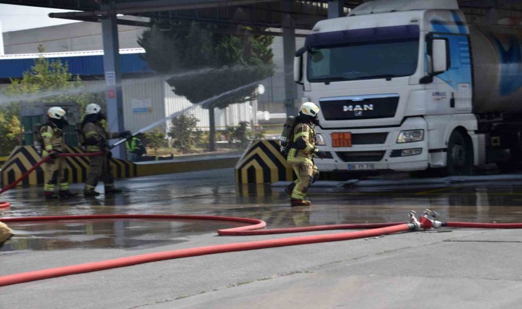 İtfaiye Haftası etkinlikleri çerçevesinde İzmir Büyükşehir Belediyesi İtfaiyesi Kuzey Bölge Amirliği, Aliağa ilçesindeki İnönü Bulvarı üzerinde bulunan bir dolum tesisinin işçileriyle ortak yangın tatbikatı yaptı.