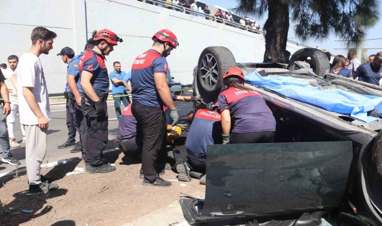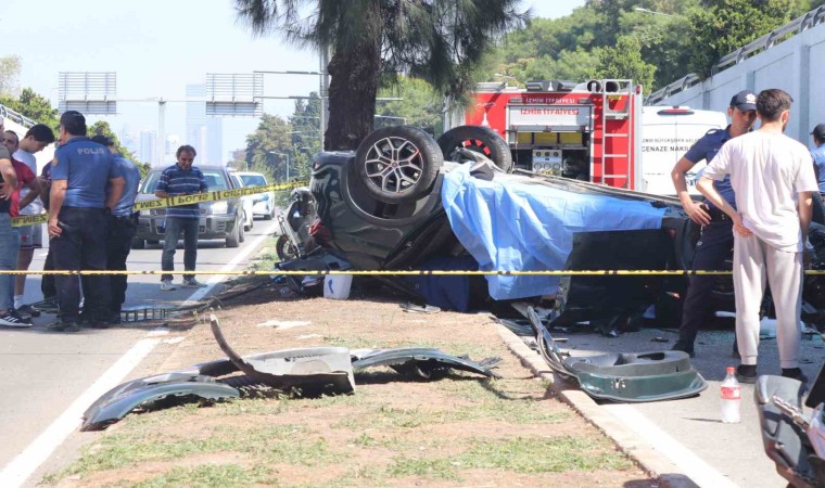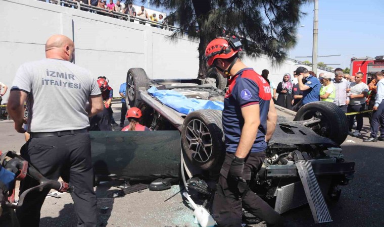 İzmir’in Konak ilçesinde hasta ziyaretine giderken köprülü kavşaktan aşağı düşen araçta bulunan 5 kadından 3’ü öldü 2’si ise ağır yaralandı. Kaza güvenlik kamerasına böyle yansıdı.