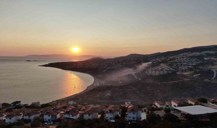 İzmir’in Dikili ilçesi Çandarlı Mahallesi’nde saat 14.21’de çıkan orman yangınına İzmir Orman Bölge Müdürlüğü, 10 uçak, 6 helikopter, 25 arazöz, 9 su ikmal aracı, 3 dozer ve 2 yer ekibiyle müdahaleye başlamıştı. Yangına havadan ve karadan müdahale sürerken, yerleşim yerlerine yakın yanan alanlar dron ile havadan görüntülendi. Görüntülerde yanan alanlar ve ormanlık alandan yükselen dumanlar yer aldı.