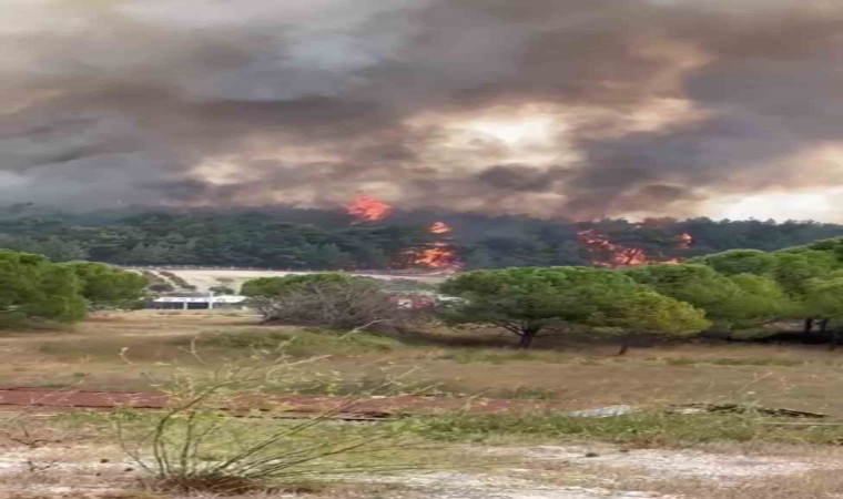 Yangın, saat 13.06 sıralarında Sarnıç Göleti mevkiindeki ormanlık alanda çıktı. ihbar üzerine adrese İzmir Orman Bölge Müdürlüğüne bağlı 5 uçak, 8 helikopter, 21 arazöz, 8 su ikmal aracı ve 6 dozer sevk edildi. Ekiplerin alevlerle mücadelesi havadan ve karadan devam ediyor.