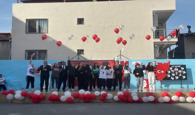 Türkiye Cumhuriyetinin kuruluşunun 100. yıl dönümü ülke genelinde özel etkinliklerle kutlanırken, İzmir Bayraklı’da da Şehit Uğur Sarıkaya Ortaokulu öğrencileri, anlamlı bir etkinliğe imza attı. Bu kapsamda öğrenciler, Cumhuriyetin önemi hakkında mektuplar yazdı. Daha sonra okul idaresi tarafından temin edilen uçan balonlara yazılan bu mektuplar bağlandı. Okul Müdürü Yücel Çakır’ın numarasının da yer aldığı 10 uçan balon, 29 Ekim sabahı öğrencilerle birlikte gökyüzüne uçuruldu.