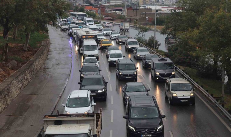 İzmir’de trafiğin en yoğun olduğu noktalardan birisi olan Yeşillik Caddesi’nde ise trafik adeta durma noktasına geldi. Yağış sonrası kayganlaşan zeminde herhangi bir kazaya sebebiyet vermemek için araç sürücüleri temkinli davrandı.