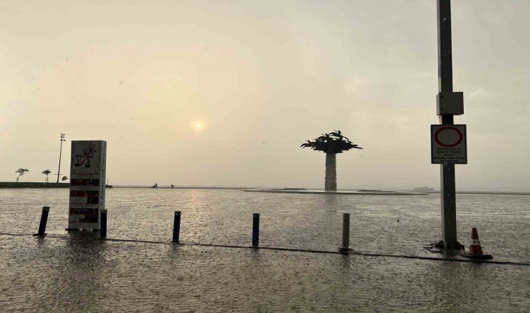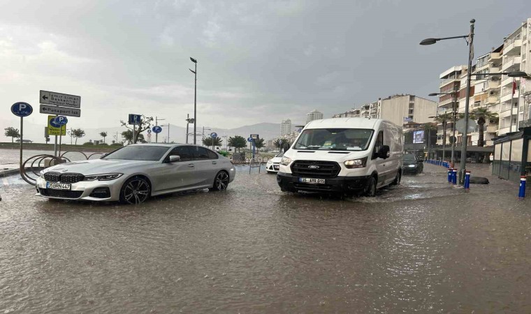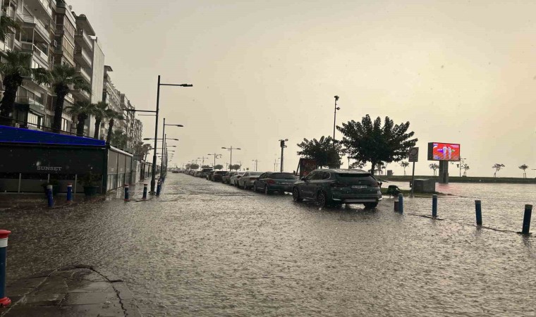 Öte yandan Konak ilçesindeki Çankaya ve Alsancak bölgesinde cadde ve sokaklar göle döndü. İzmir’in kalbi konumundaki Kordon’da yoğun bir şekilde yağmur suları birikti.