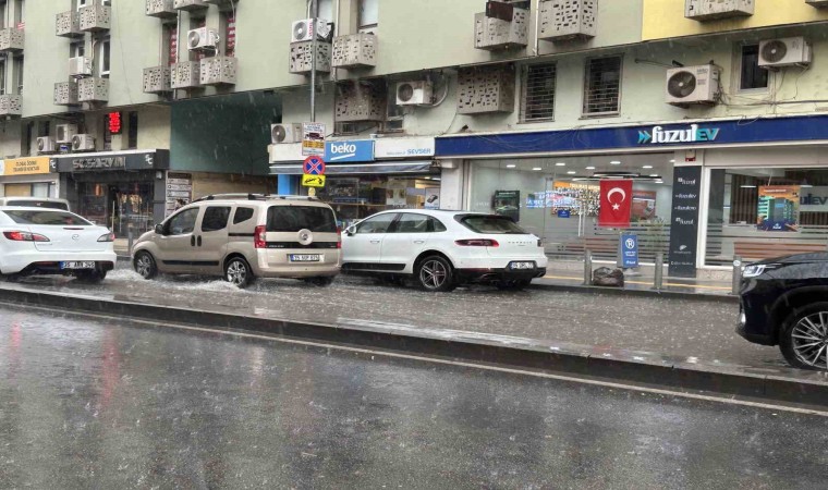İzmir’de aniden bastıran sağanak yağış, cadde ve sokakları göle çevirdi.
