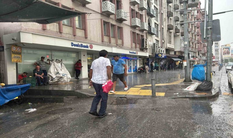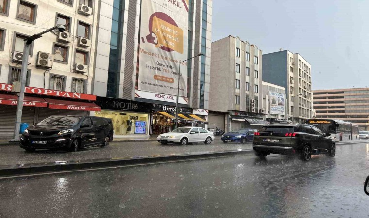 İzmir’de sağanak yağmur öğleden sonra merkez ilçelerde etkili oldu. Aniden bastıran sağanak yağış, sürücü ve vatandaşlara zor anlar yaşattı. Yağmura hazırlıksız yakalanan vatandaşlar saçakların altına gizlendi.