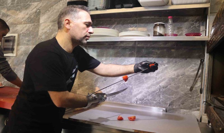 İzmir’de, sağ elini kıyma makinesine kaptırdıktan sonra engelli olarak mesleğine devam eden 45 yaşındaki döner ustası Fesih Gündem, çok sevdiği mesleğini sürdürebilmek için engelleri aştı, kendine özel aparat geliştirdi. Geliştirdiği aparat sonrası mahallenin ‘demir elli ustası’ olarak tanınan Gündem, aparatın ucuna çeşitli bıçaklar takarak hem hayatını kolaylaştırıyor hem de döner kesip, et ve salata doğrayabiliyor.