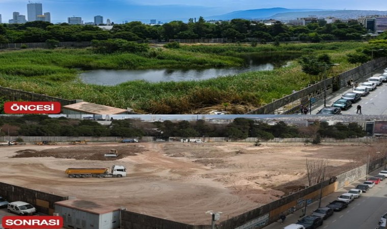 “İzmir’in bir sorunu” haline gelen arazi, kısa bir süre öncesine kadar ise kent merkezinde mini göleti andırıyordu. Çeşitli dönemlerde atılan temellerin üzerine yağmur sularının dolduğu arazide ise şu sıralarda hummalı bir çalışma var.