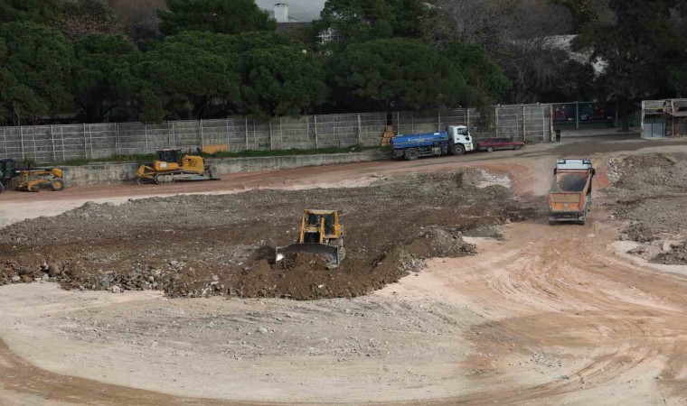 İzmir Büyükşehir Belediyesi ekipleri, aylar süren çalışmayla kamyonlar vasıtayla tonlarca molozla araziyi doldururken, 20 bin metrekarelik alan son aşamada dümdüz oldu.