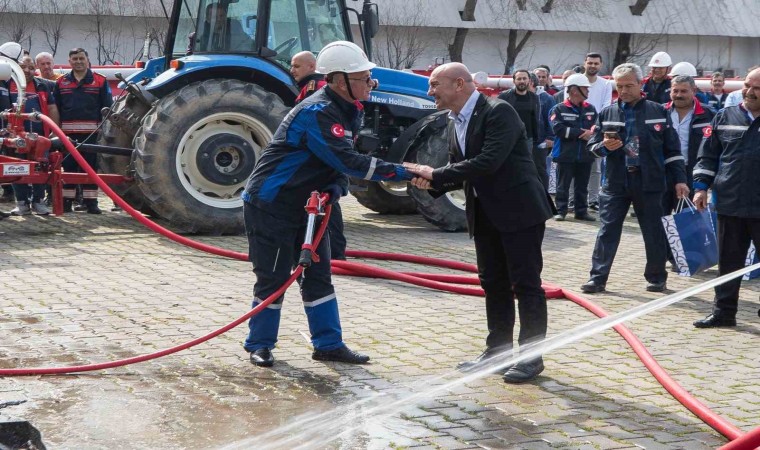 İzmir Büyükşehir Belediye Başkanı Tunç Soyer’in dirençli kent vizyonu doğrultusunda çalışan İzmir Büyükşehir Belediyesi orman yangınlarına erken müdahale edilmesi, yangın söndürme ekipmanlarının artırılması amacıyla orman köylerine su tankeri dağıtımına devam ediyor. İzmir Büyükşehir Belediye Başkanı Tunç Soyer’in ev sahipliğinde Kültürpark Atlas Pavyonu yanında bulunan alanda yapılan törenle orman köylerine 40 yangın tankeri daha verildi. Daha öncekilerle beraber toplam dağıtılan tanker sayısı 165 oldu. Törene İzmir Büyükşehir Belediyesi Genel Sekreteri Barış Karcı ile genel sekreter yardımcıları, İzmir Büyükşehir Belediyesi İtfaiye Dairesi Başkanı İsmail Derse, bürokratlar, muhtarlar ve vatandaşlar katıldı. Törenin ardından tankerlerle tatbikat yapıldı.